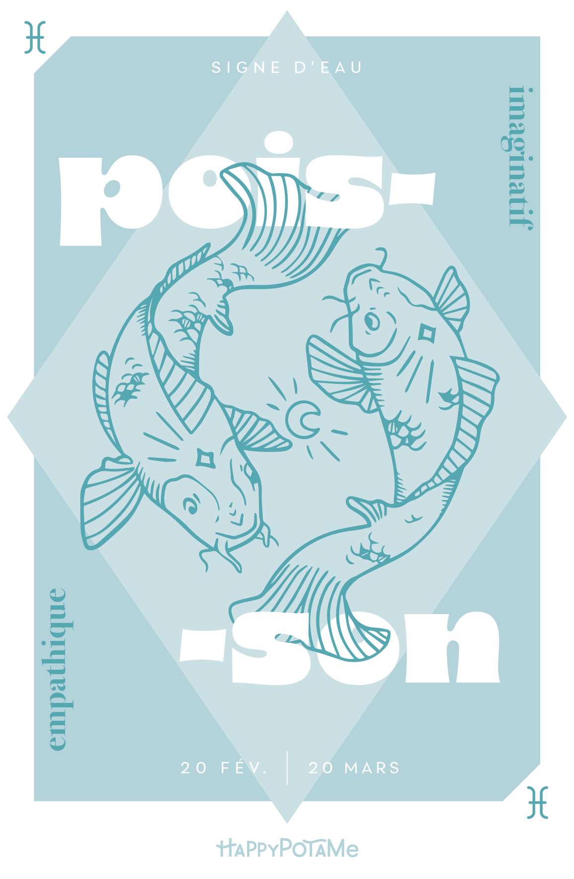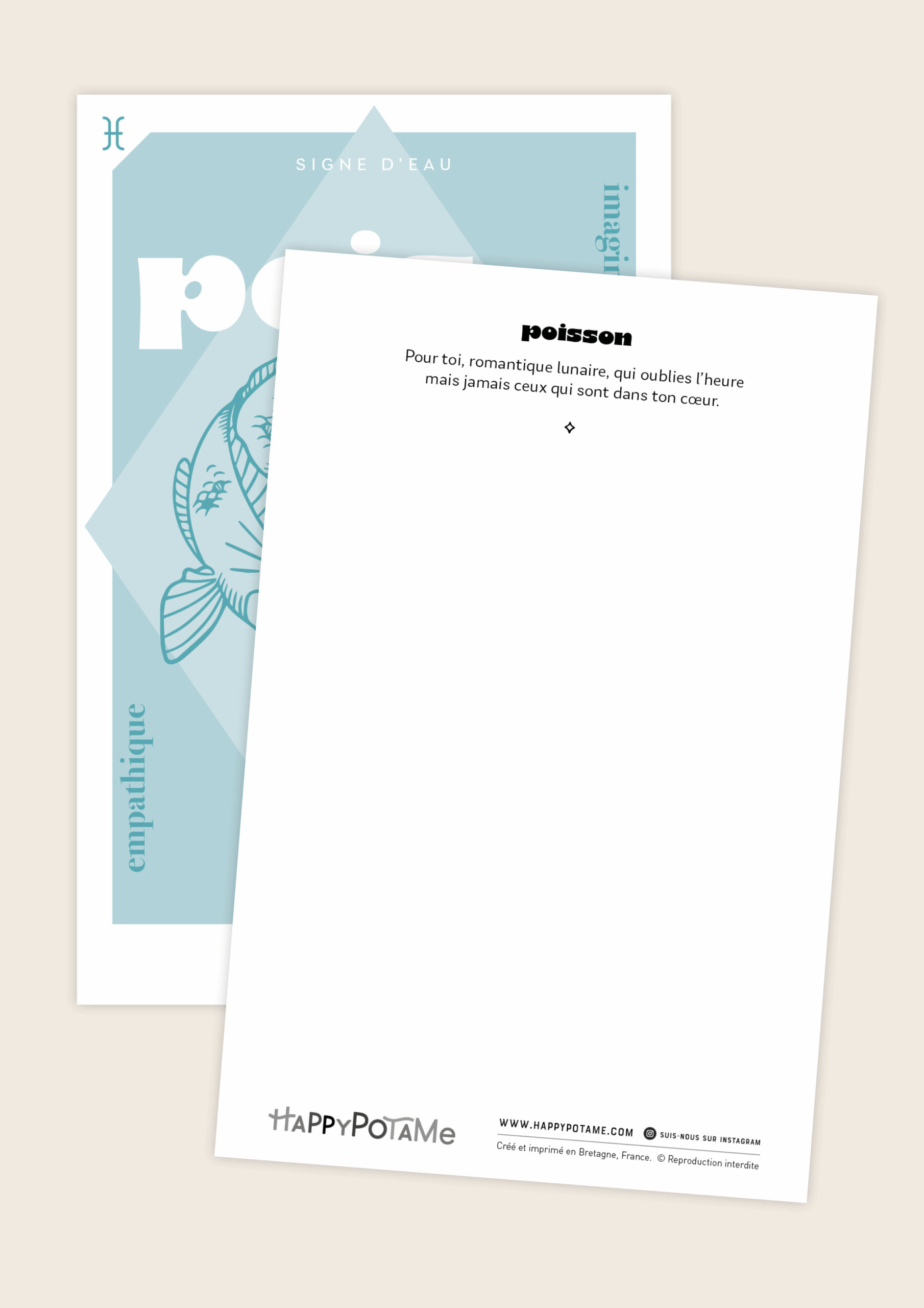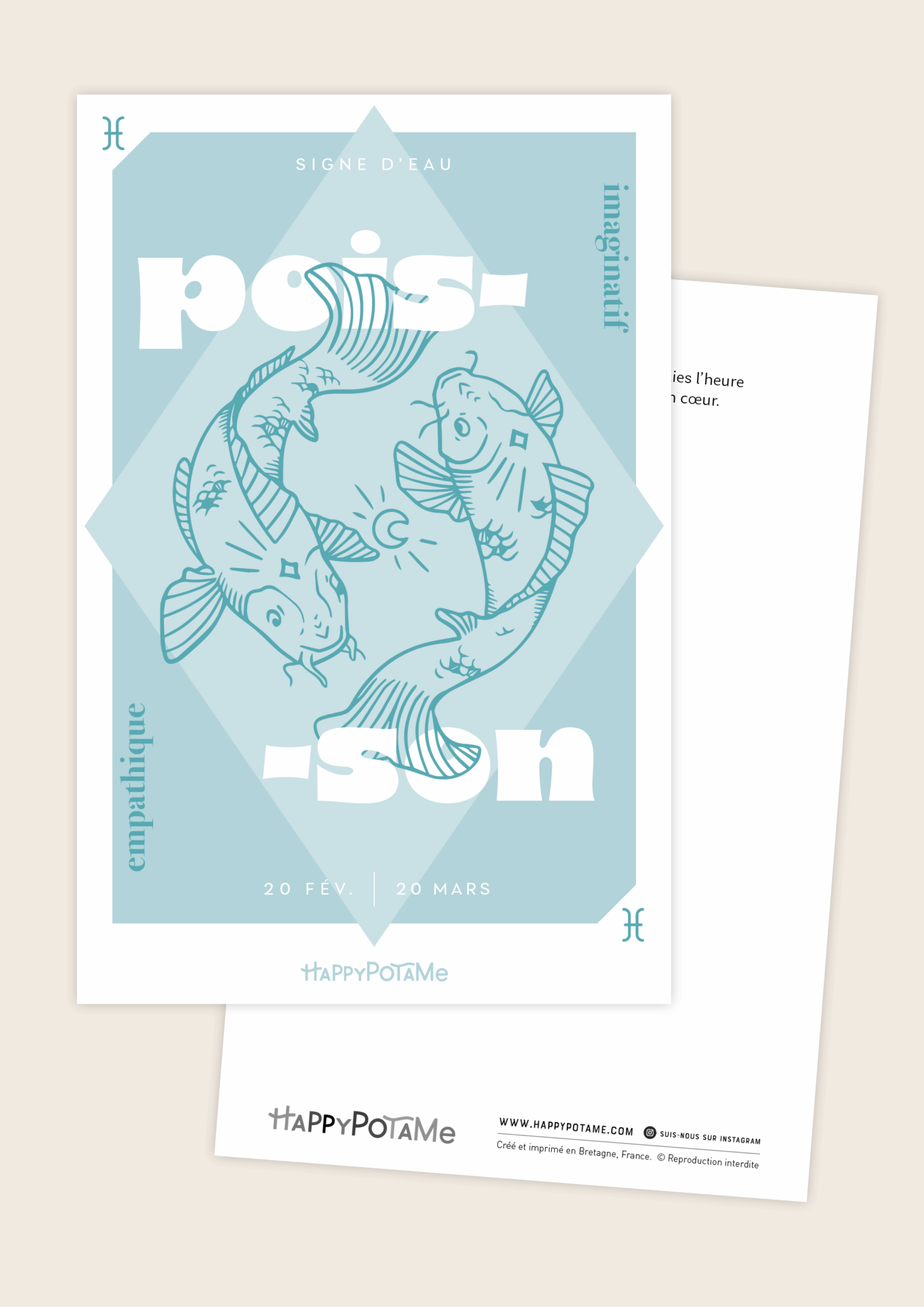 Cette carte célèbre les Poissons, signe rêveur et sensible, toujours à l’écoute des émotions et des imaginaires.