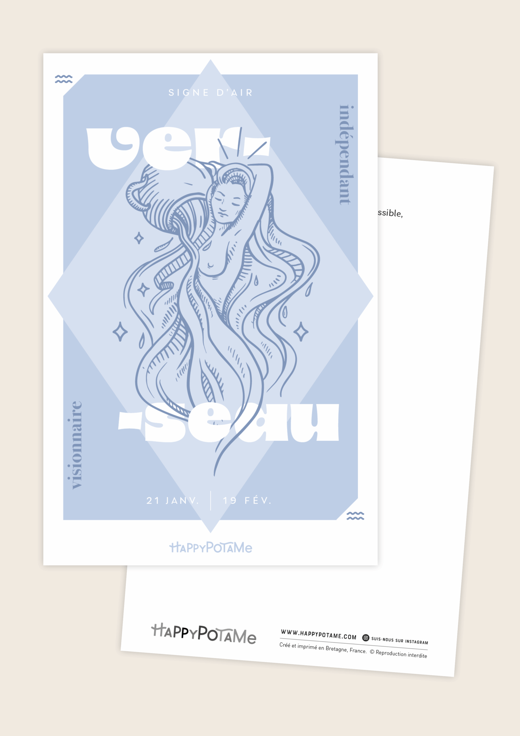 Cette carte célèbre le Verseau, signe libre et visionnaire, toujours un pas en avance et plein d’idées originales.