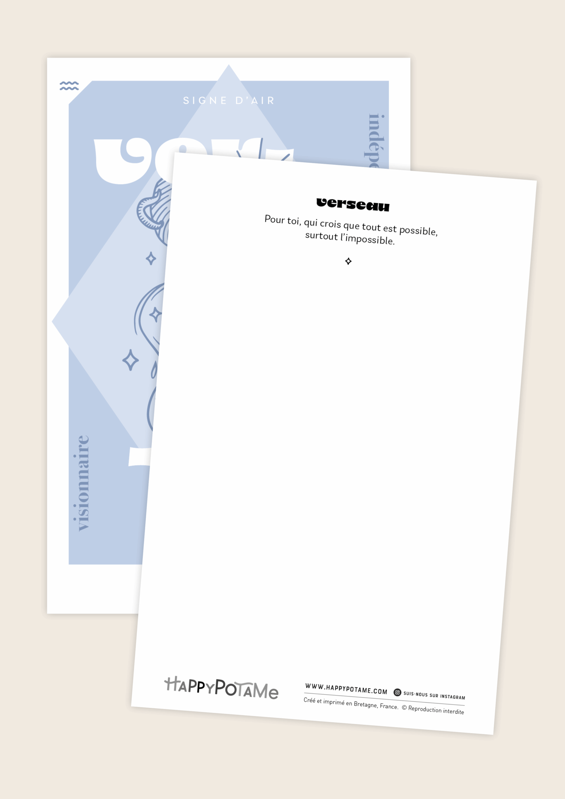 Le Verseau aime surprendre, expérimenter, penser différemment et inspirer son entourage. Cette carte est un clin d’œil à celles et ceux qui vivent selon leurs règles, avec curiosité et enthousiasme.